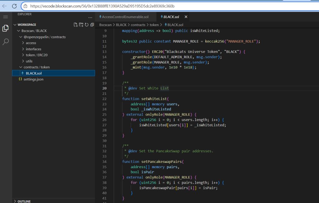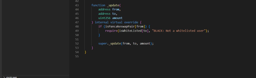 以上代码的作用是, AMM池中, 参与流通合约地址, 禁止代币转出(除了设置的白名单除外)